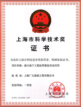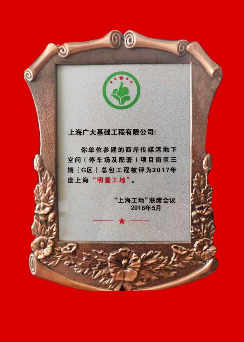 上海廣大基礎工程有限公司是一家集科研、施工為一體的具有專業特色的大型施工企業,具有地基基礎工程專業承包一級資質,上海市高新技術企業,上海市建筑施工行業協會會員單位、上海市土木工程學會團體會員、上海市SMW工法協會常務理事單位、TRD工法協會會長單位、大直徑高壓旋噴樁協會會員單位、靜鉆根植樁技術發展研究會副會長單位、微擾動四軸攪拌樁(DMP工法)研究會會員單位。